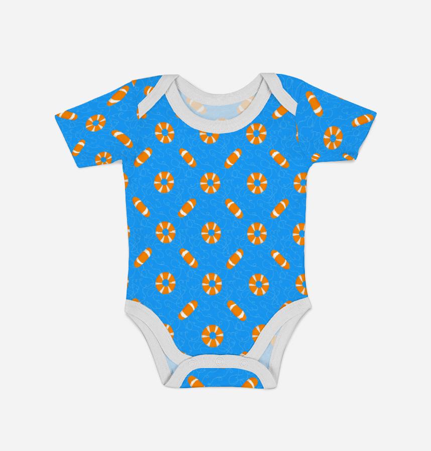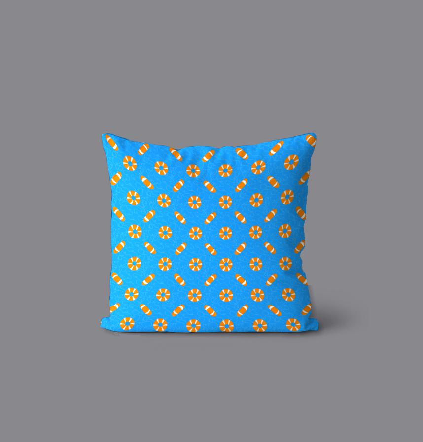 パターン説明 オレンジのストライプのチューブが海に浮かんでいるような夏の感じのパターン