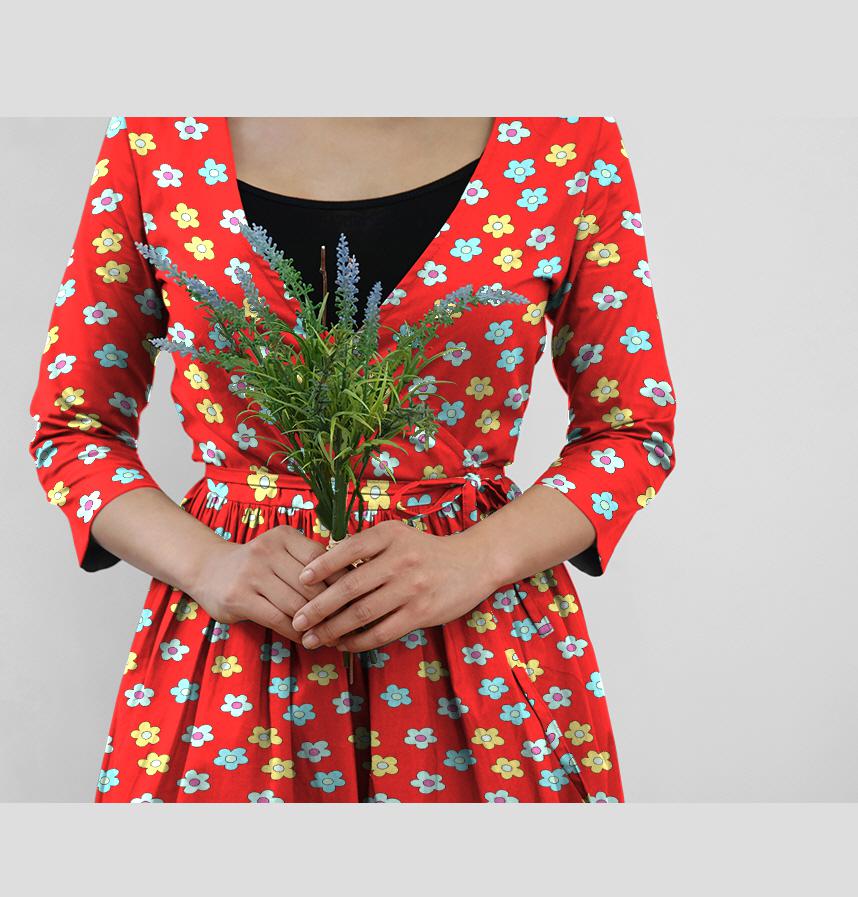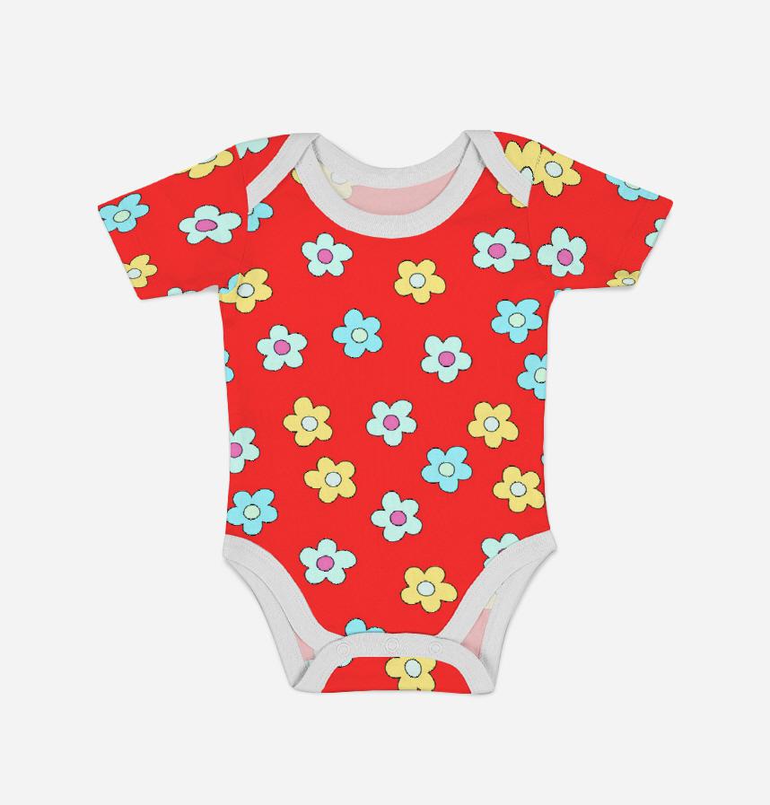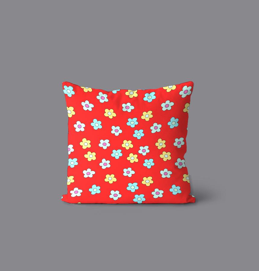 鮮やかな赤の背景とカラフルな花はお祝いと活気に満ちた感じを与えます