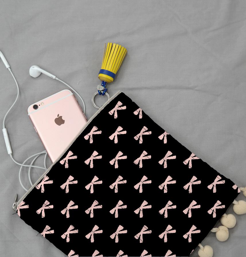 パターン説明 黒背景にピンクリボンの組み合わせでトレンディでかわいいパターンです。