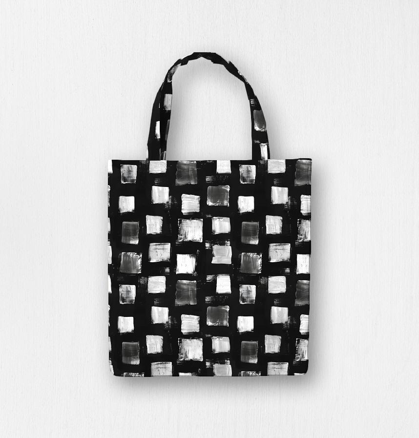 パターン説明 油絵風のモノクロの四角形が織り成すシンプルなデザインです。