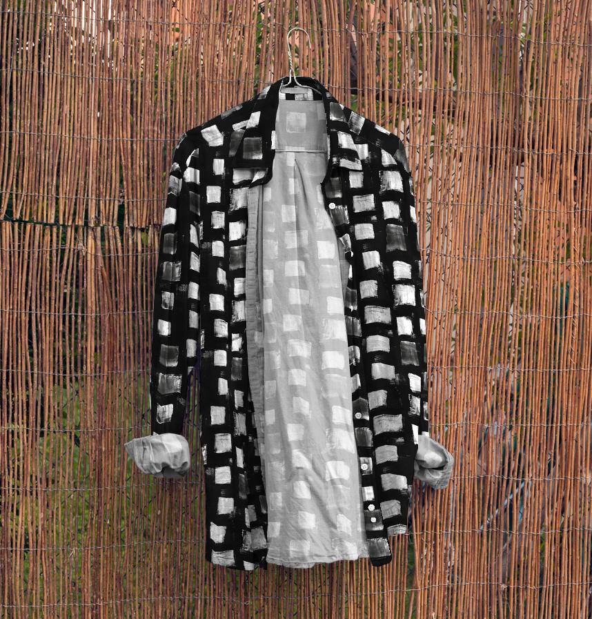 油絵風のモノクロの四角形が織り成すシンプルなデザインです。