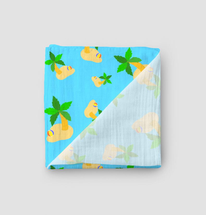 見るだけでも涼しくなる海と青いヤシの木、とても甘いビーチボールまで!夏に活用が良いデザインです。