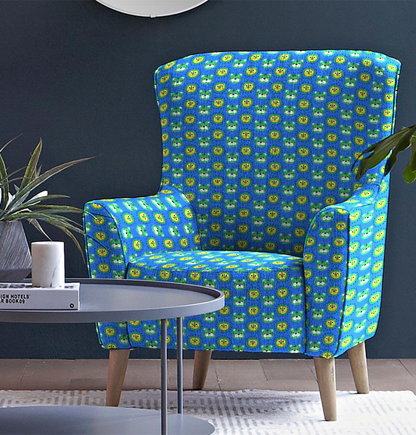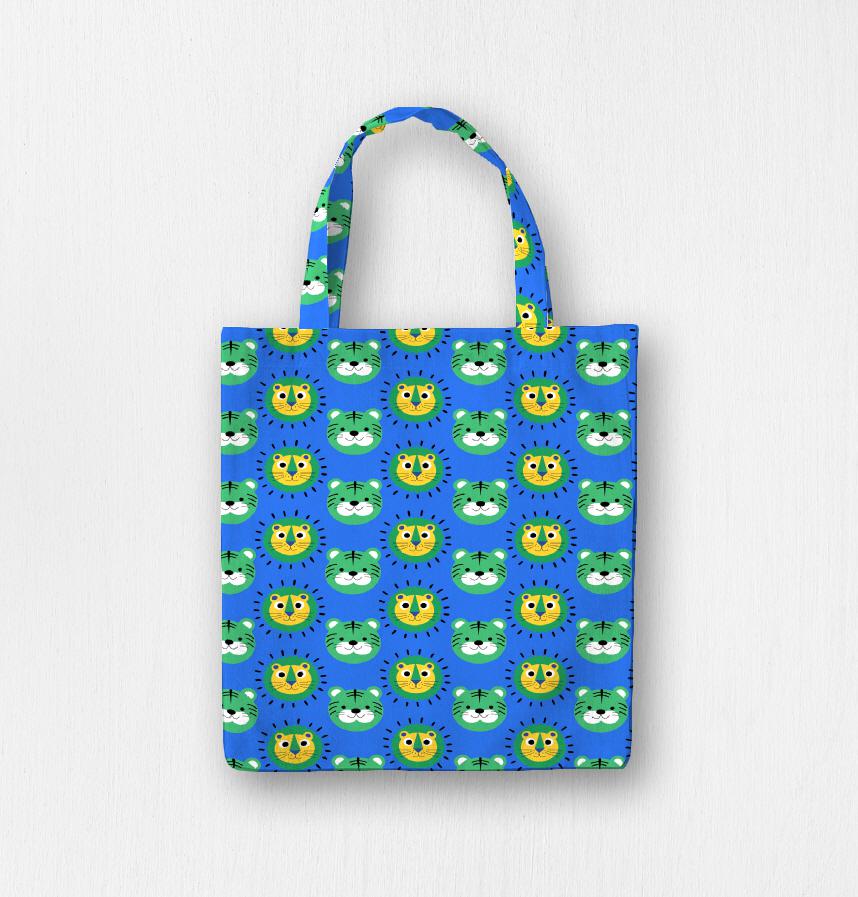 ライオンと虎の顔が繰り返し現れるかわいい柄です。