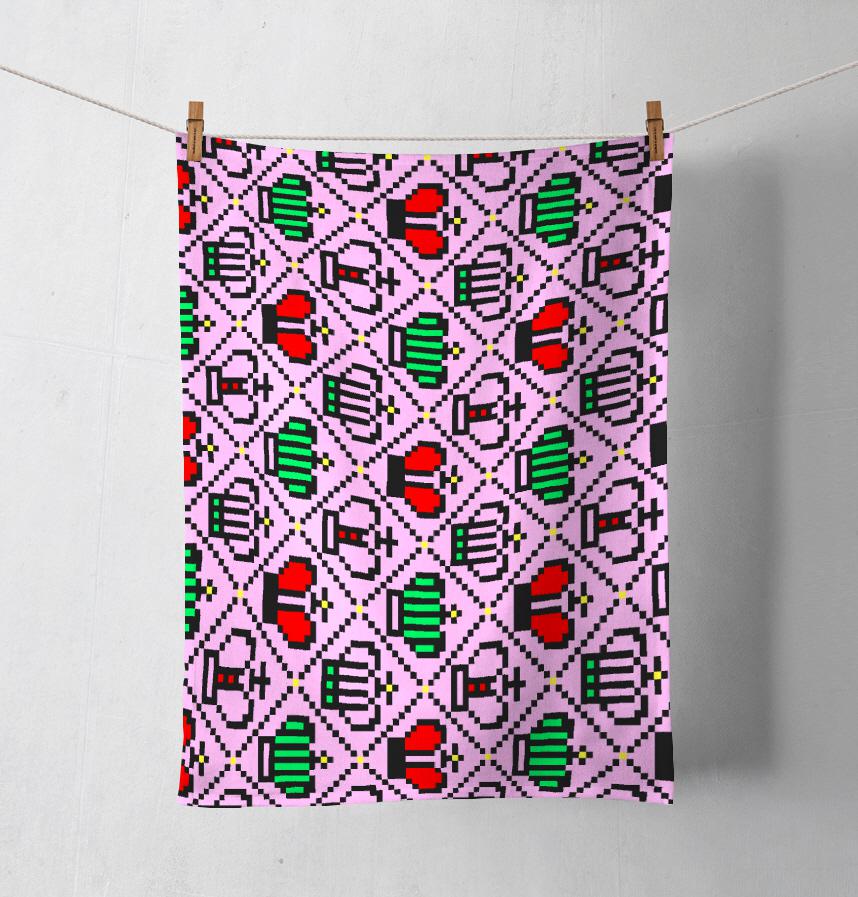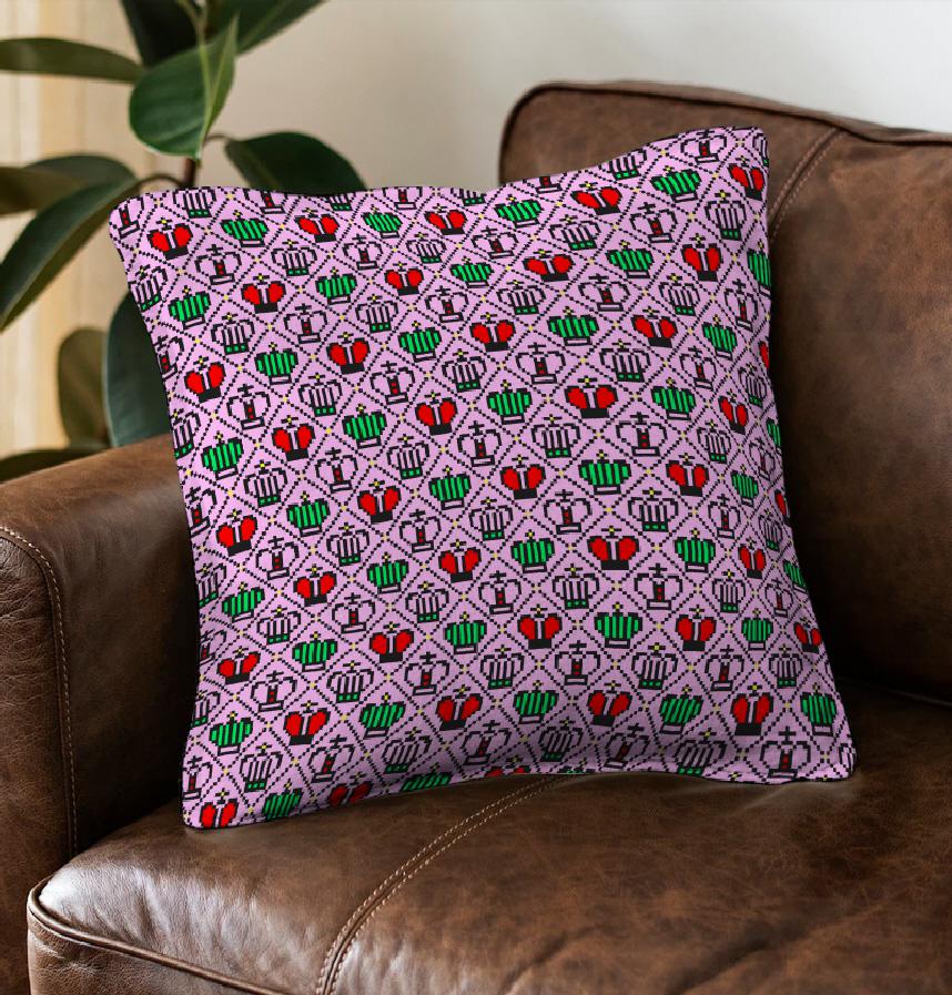 緑と赤を取り入れた王冠に、かわいいピンクの地色をつけました。