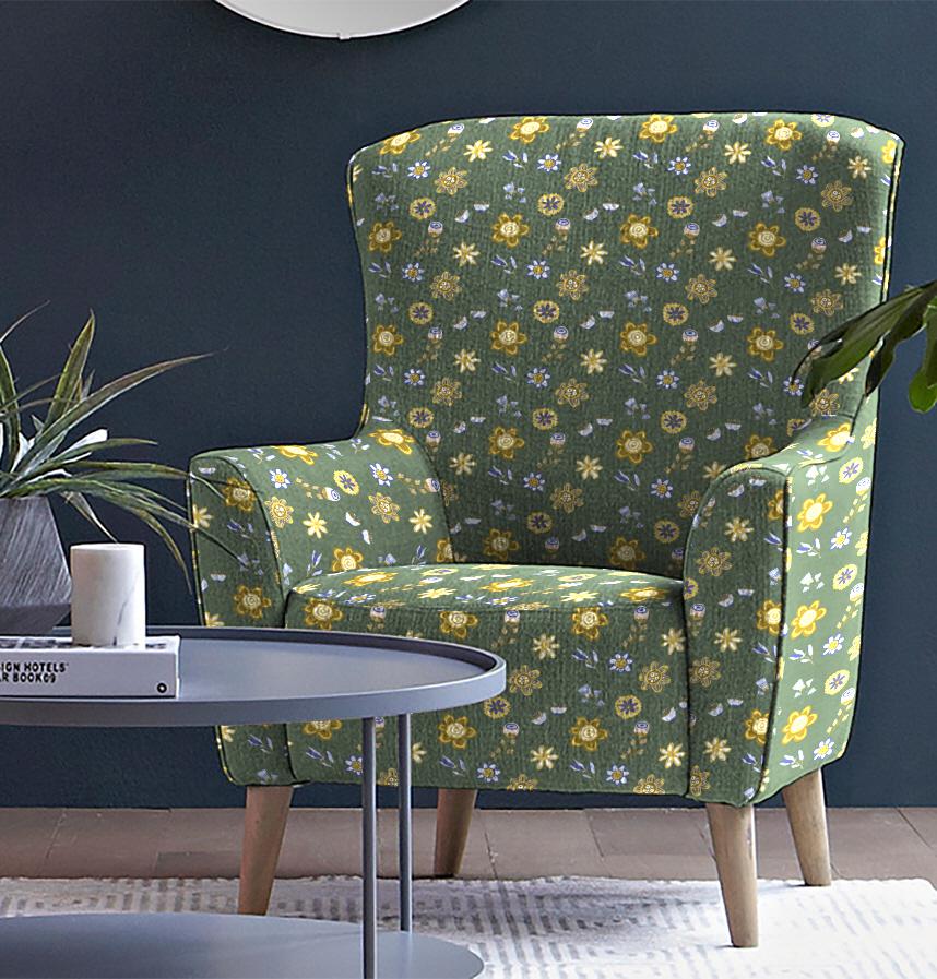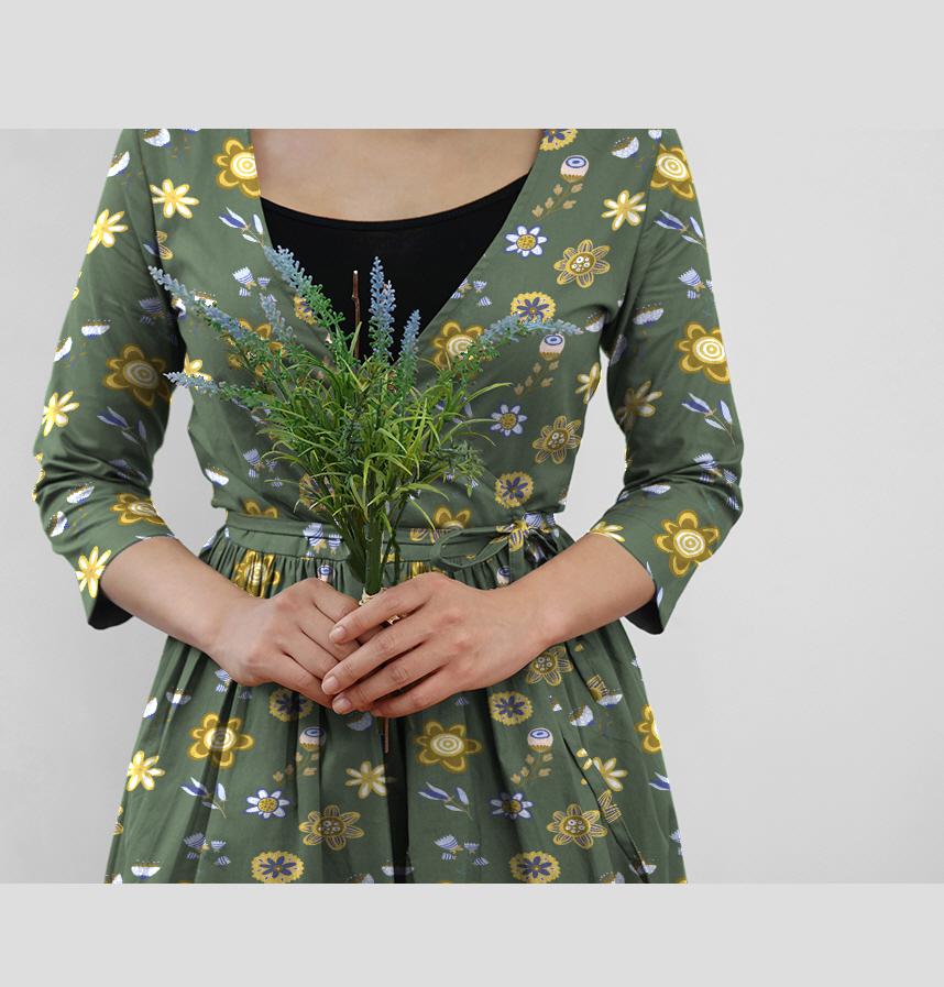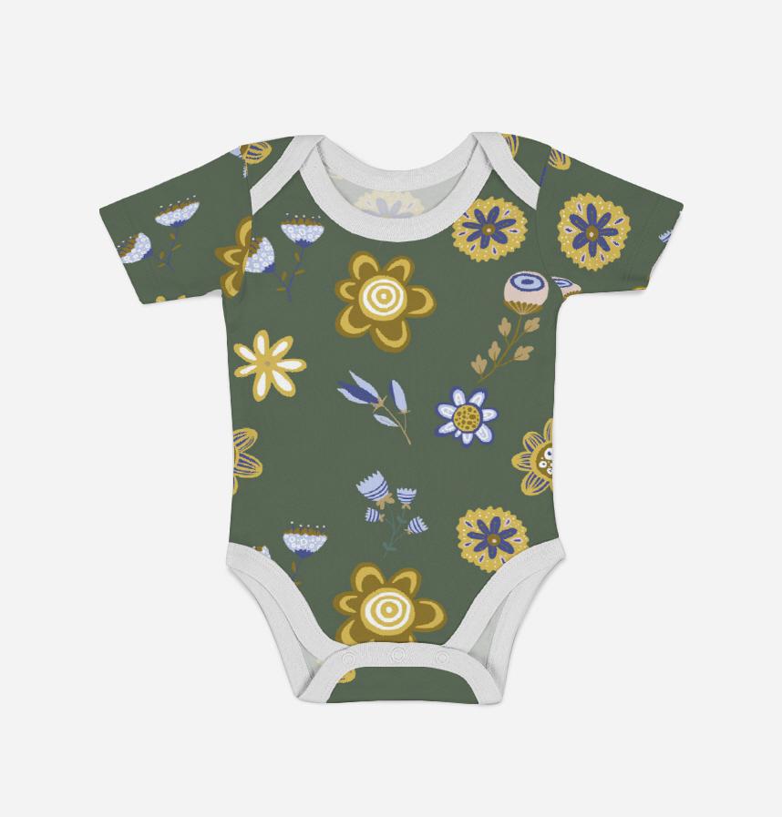 パターン名 ドローイング スタイル 抽象フラワーパターン - オリーブグリーン