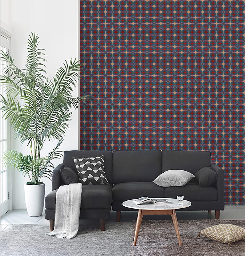 このパターンはさまざまな用途で利用できます。たとえば、ファブリックデザイン、壁紙、包装紙、またはデジタル背景などに適しています。幾何学的で対称的なデザインは特にモダンなインテリアによく合い、色の強さは視覚的に注目に値する要素を提供します。