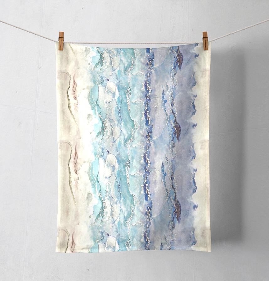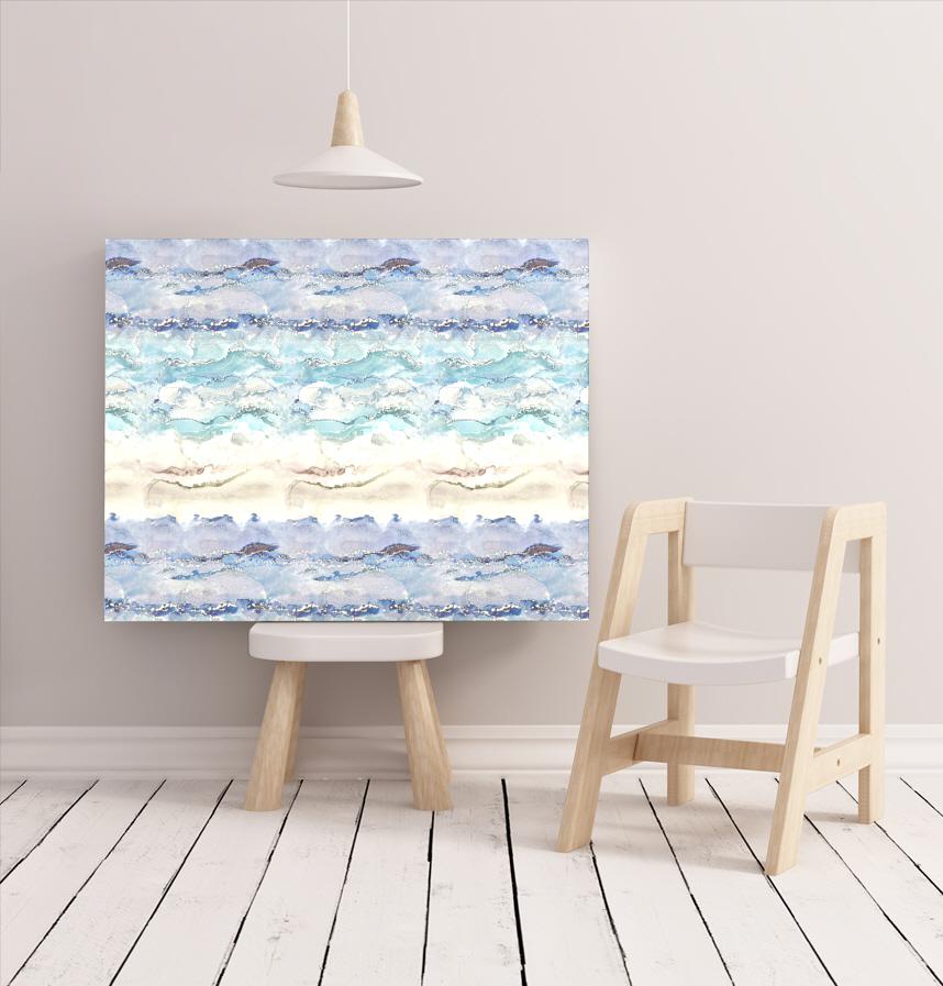 アルコールインクアートで海を描き、柔らかいラインのボーダーパターンに仕上げました!