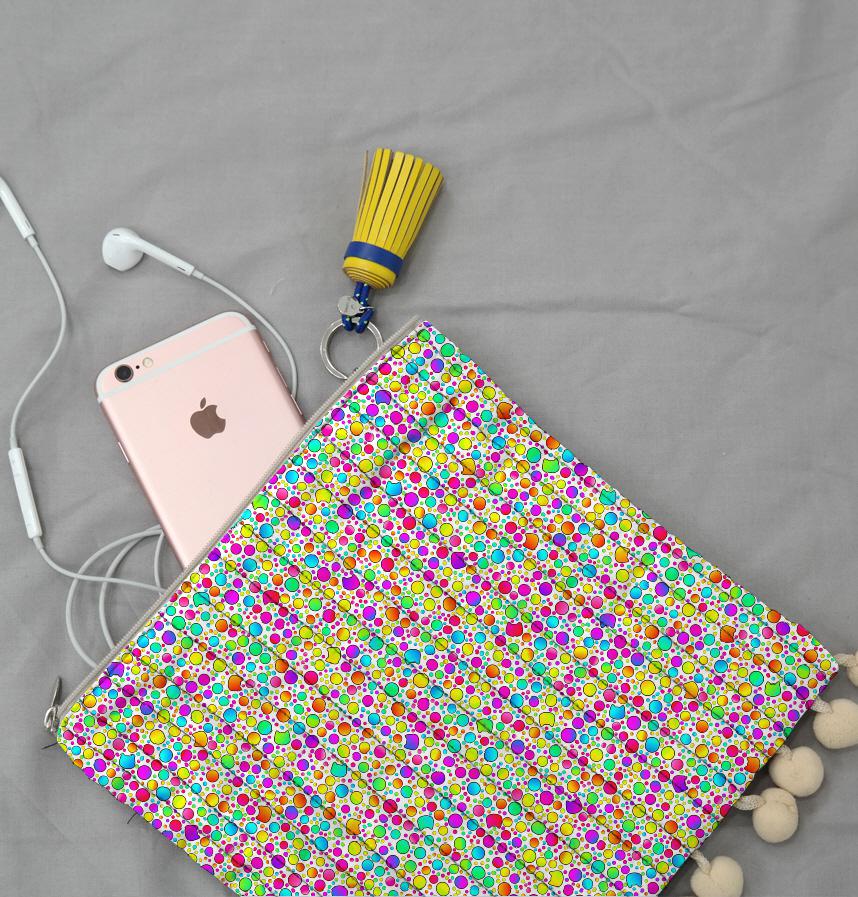 パターン説明 カラフルでランダムな水玉模様に時々猫の顔