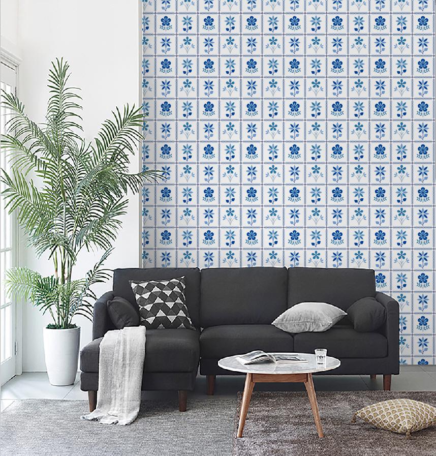 素朴で愛らしい 青(Azur)がきれいなポルトガルのタイル風のもよう