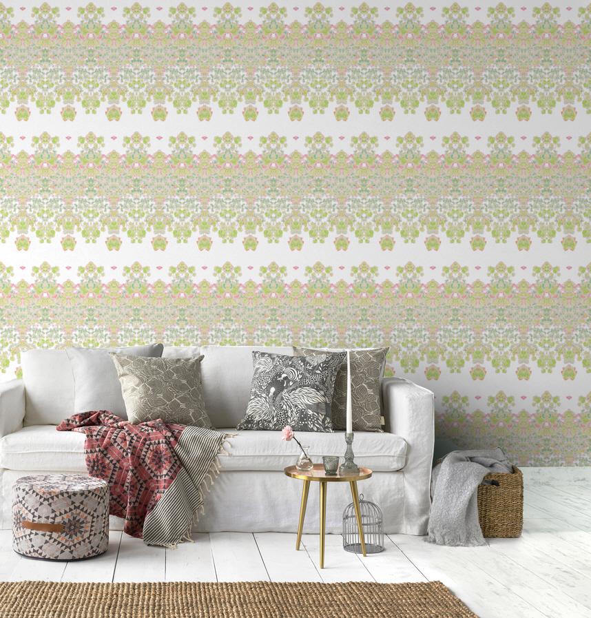 水彩色鉛筆で描いた花オレガノ(ケントビューティ)を数回組み合わせミラーに配置しました。