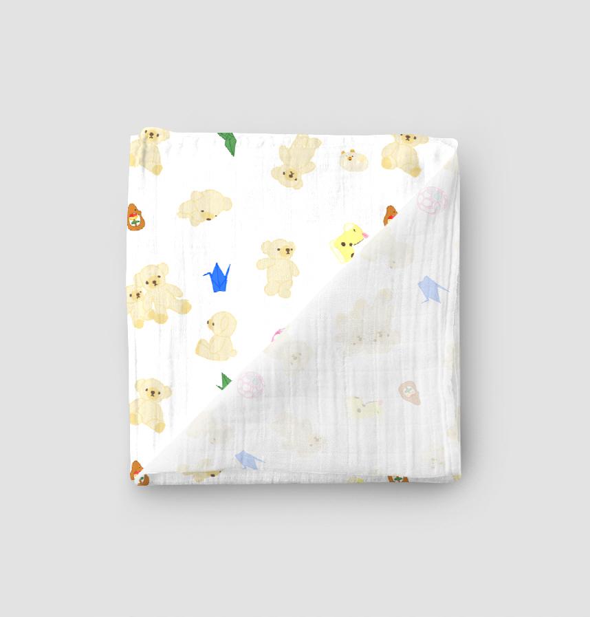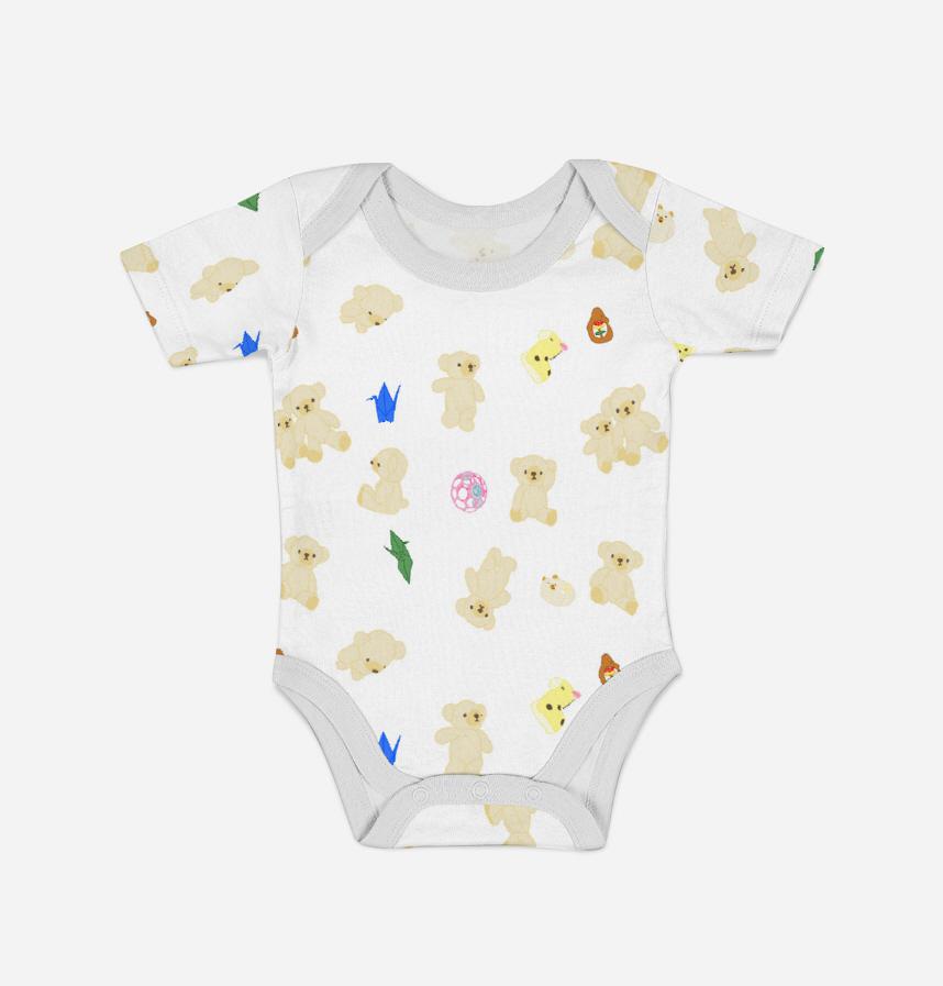 テディベアと赤ちゃんのおもちゃを描いたプレイスペースをイメージしたデザインです。