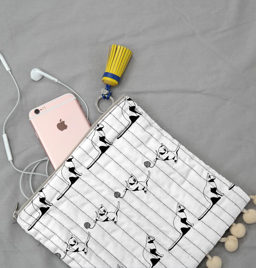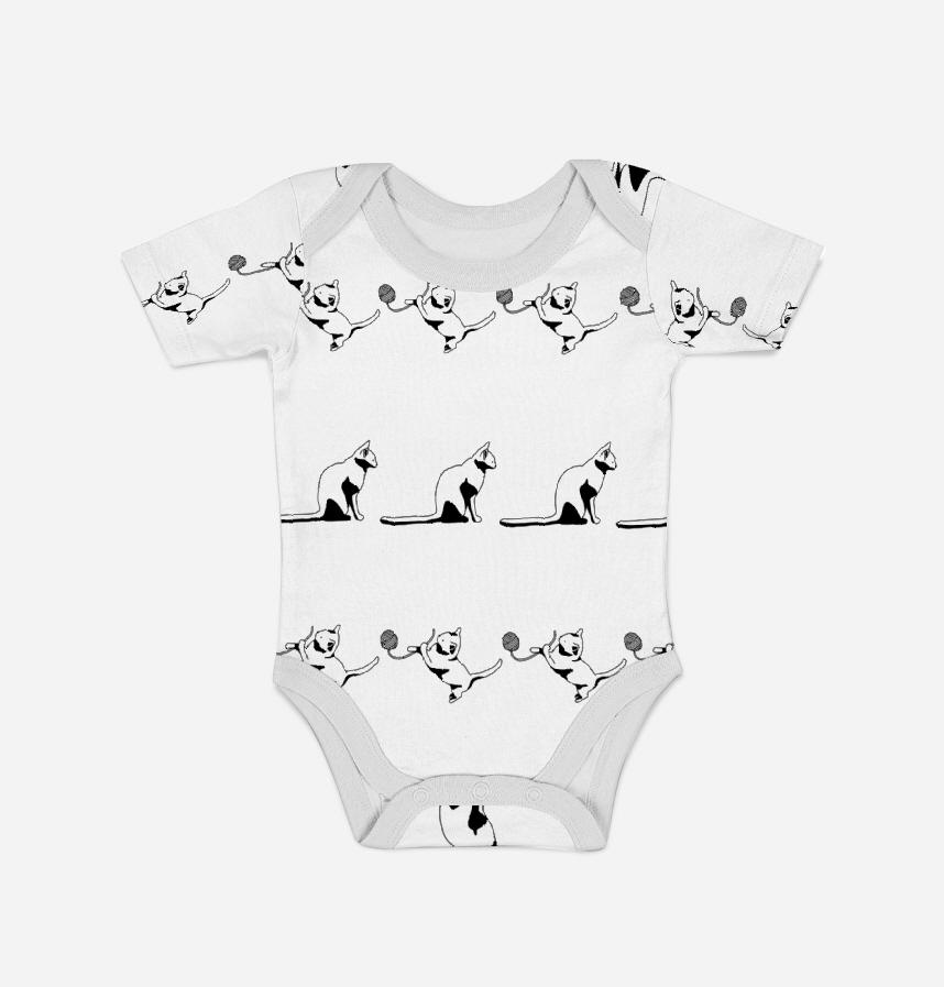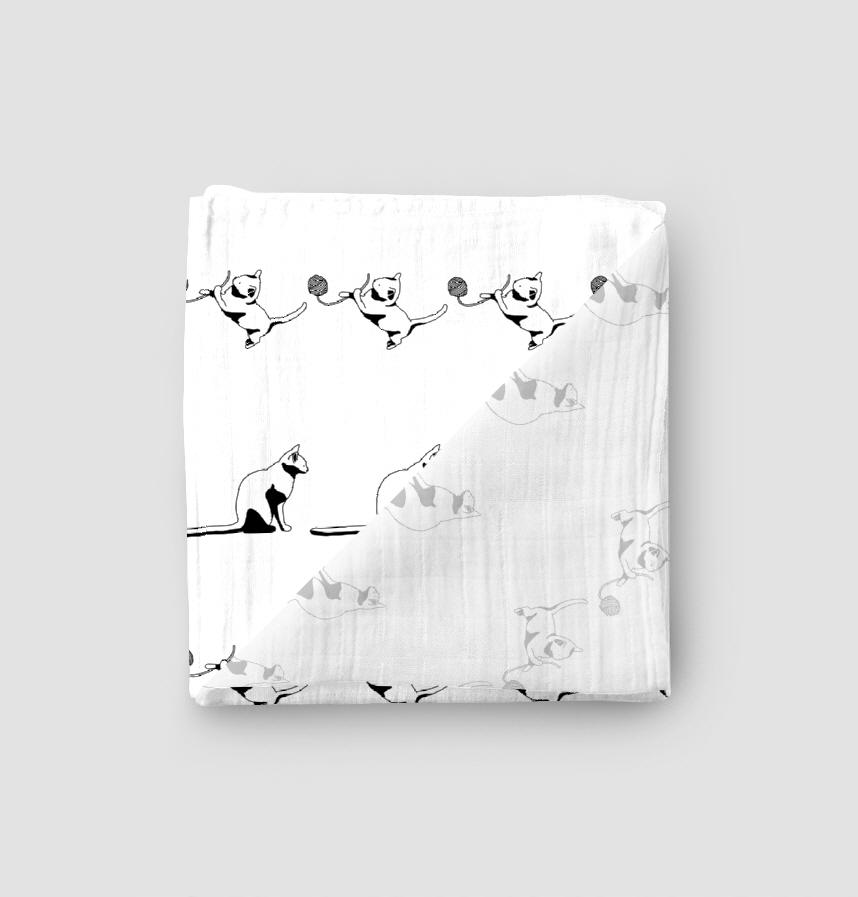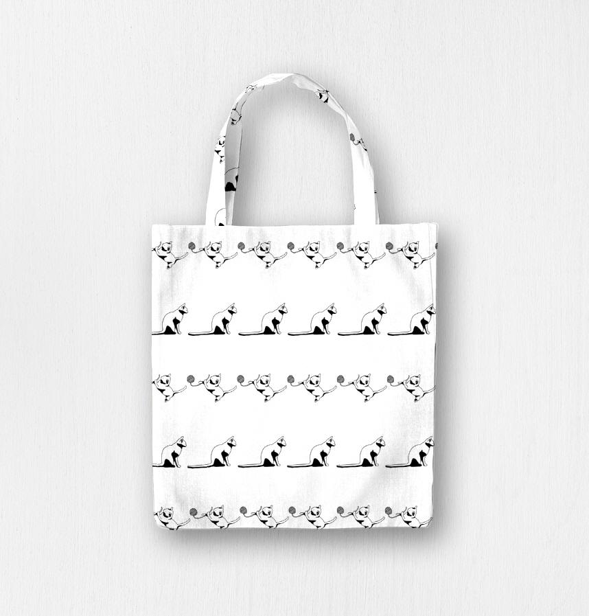 横から見た猫と毛糸で遊ぶ猫でできたボーダー柄です。