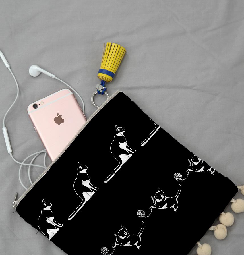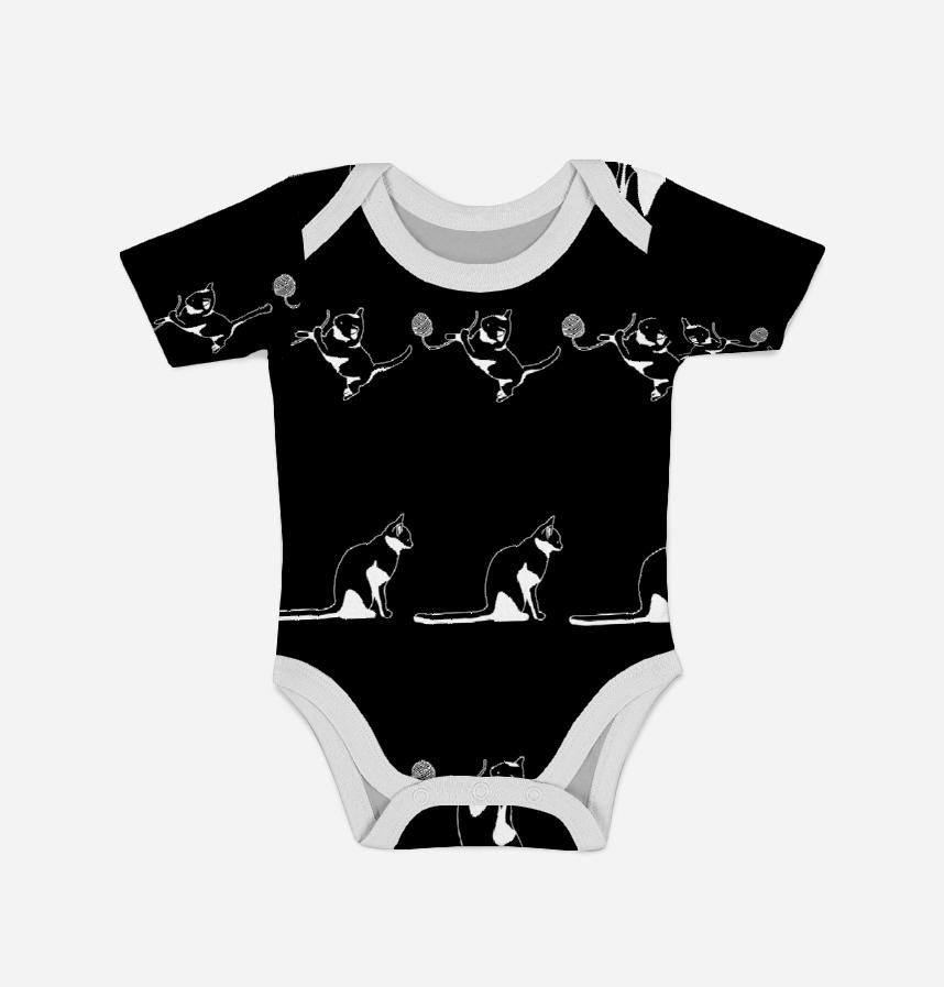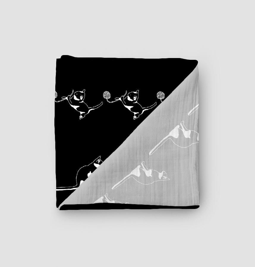 横から見た猫と毛糸で遊ぶ猫でできたボーダー柄です。