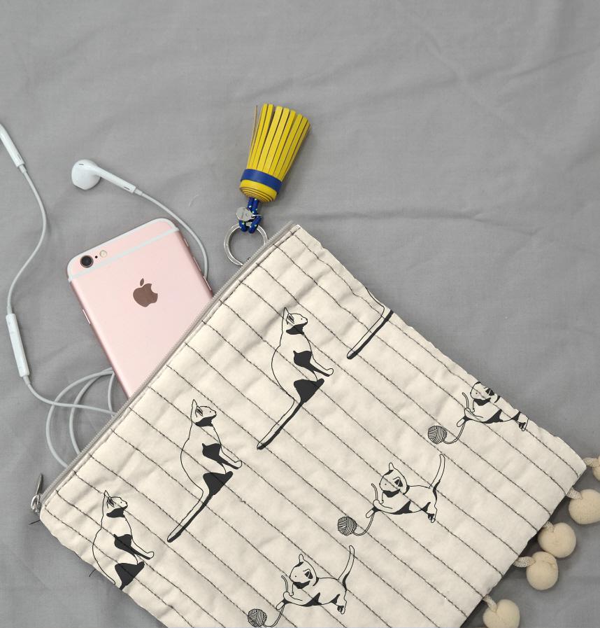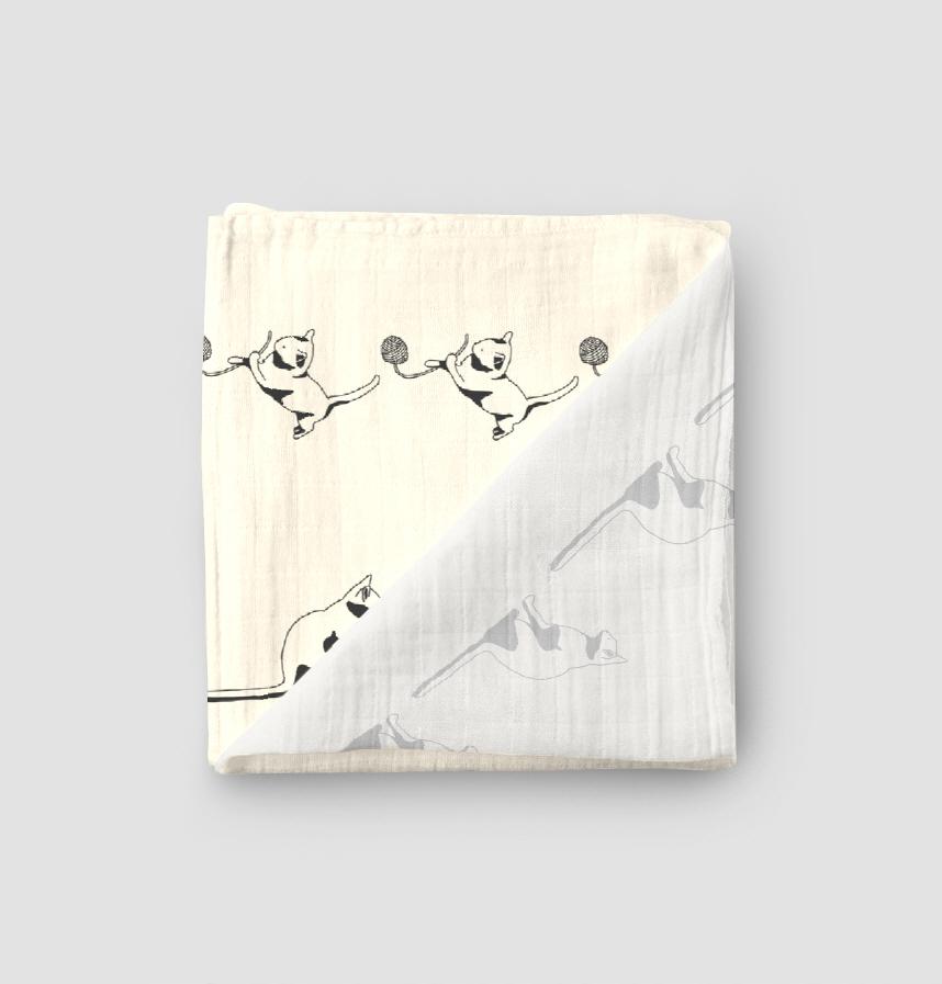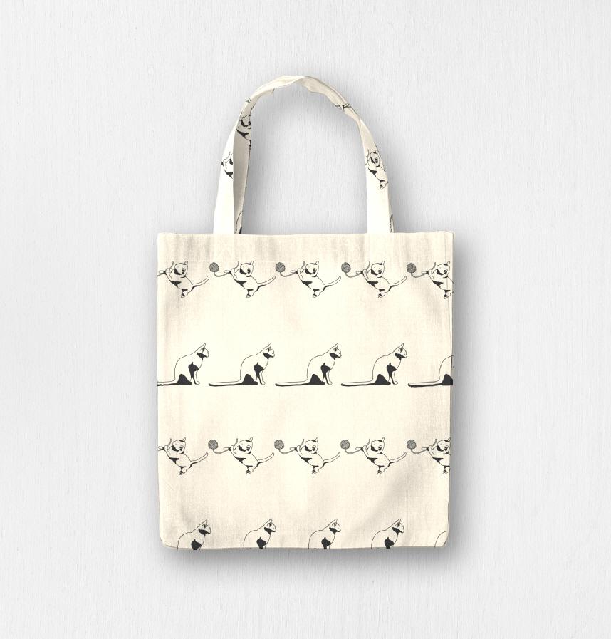 横から見た猫と毛糸で遊ぶ猫でできたボーダー柄です。