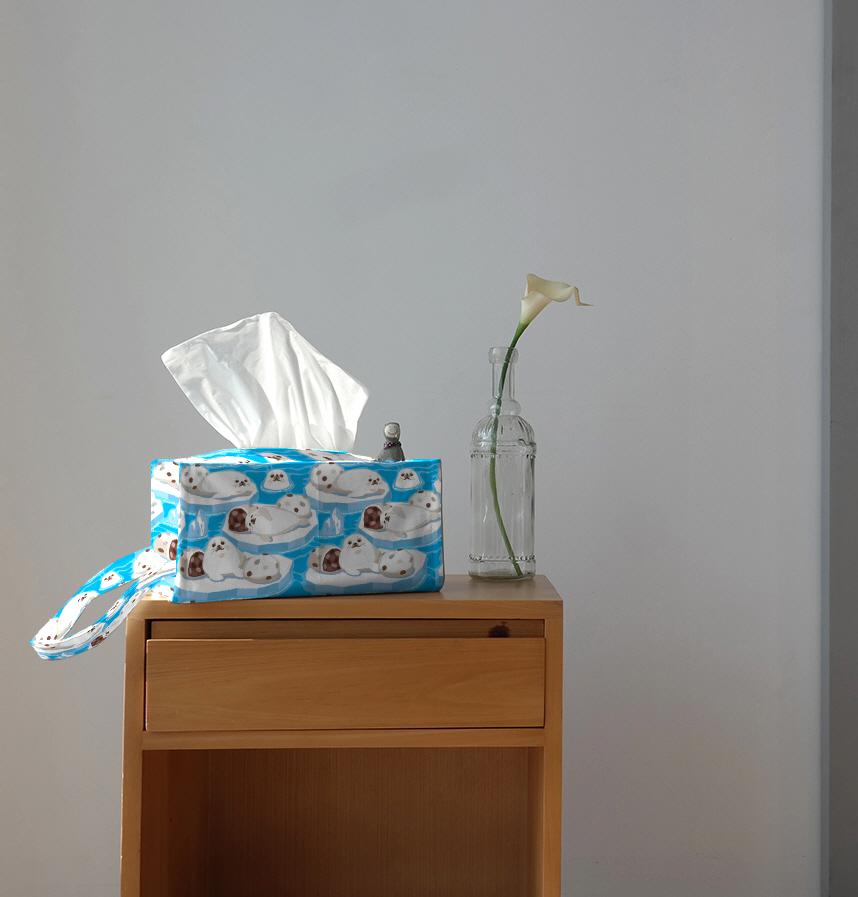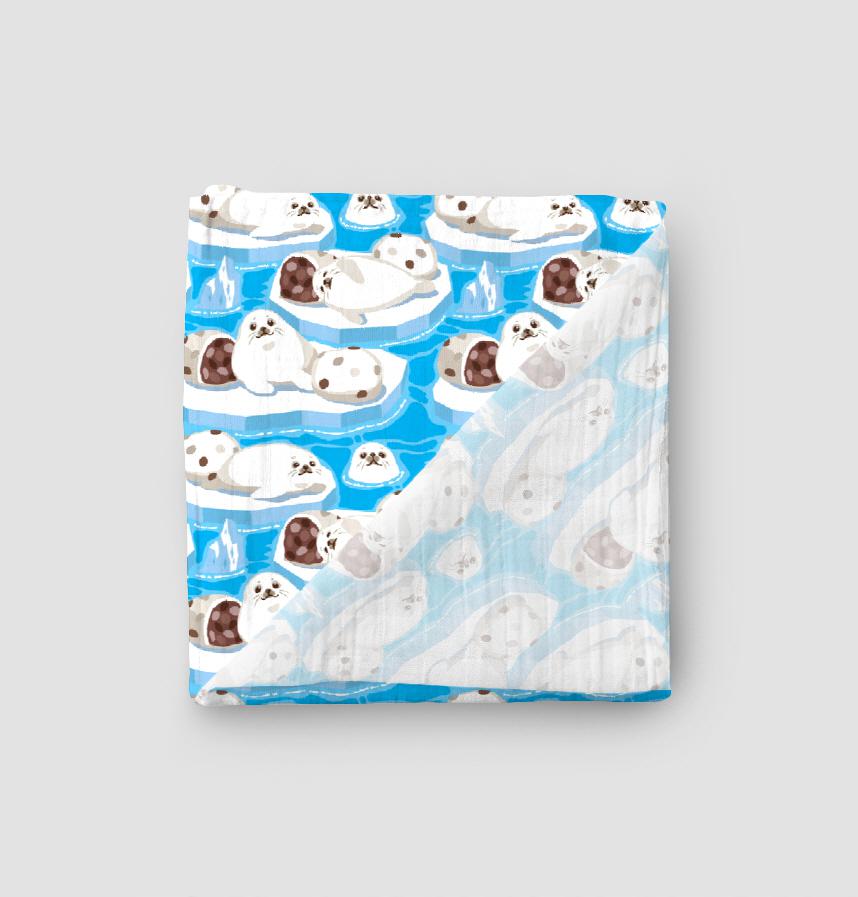 パターン名 アザラシと豆大福 (14×14cm) ブルー