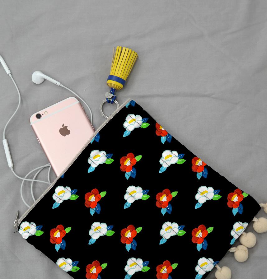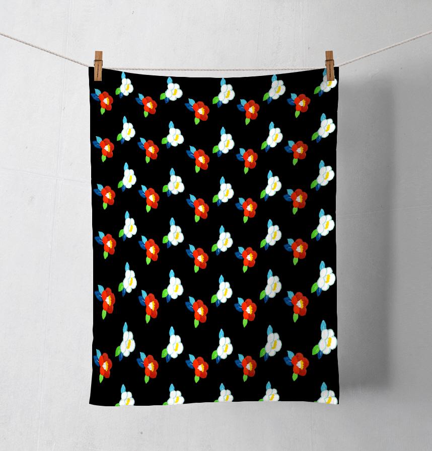 パターン説明 透明水彩で描いた、シンプルな椿のパターンです。