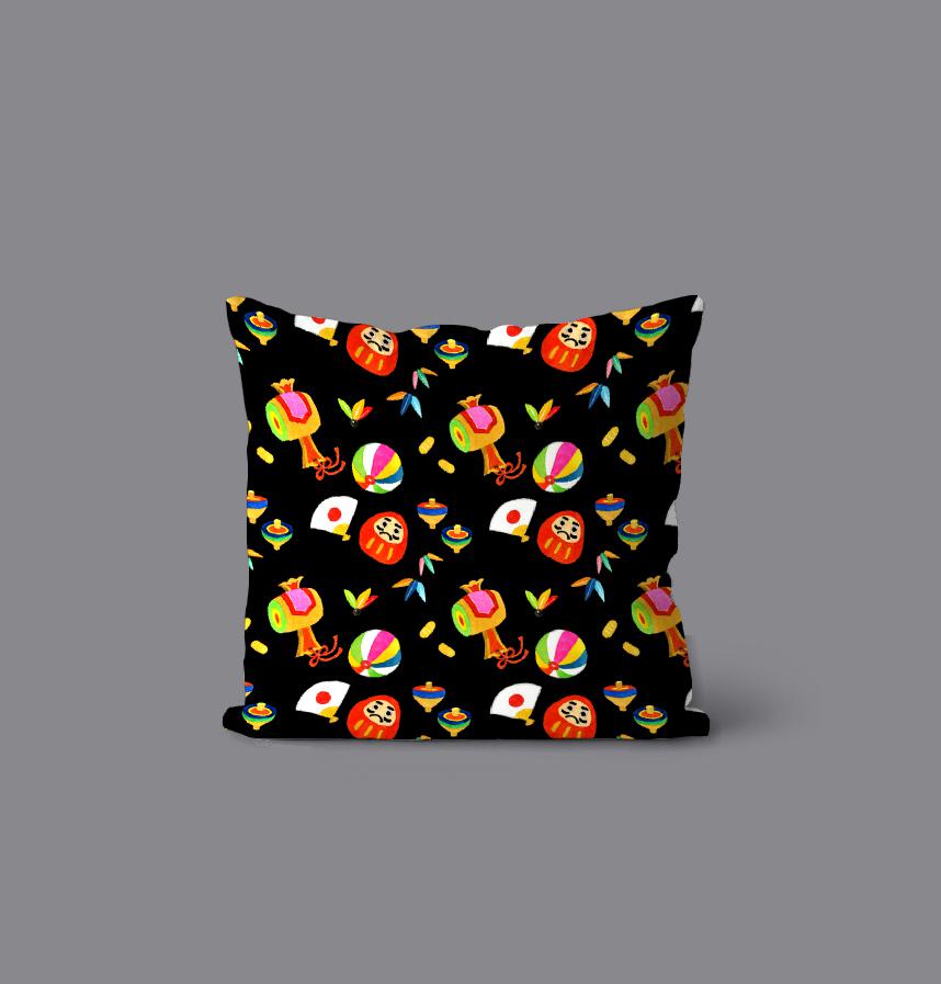 パターン名 かわいい正月モチーフのパターン(手描き水彩イラスト)