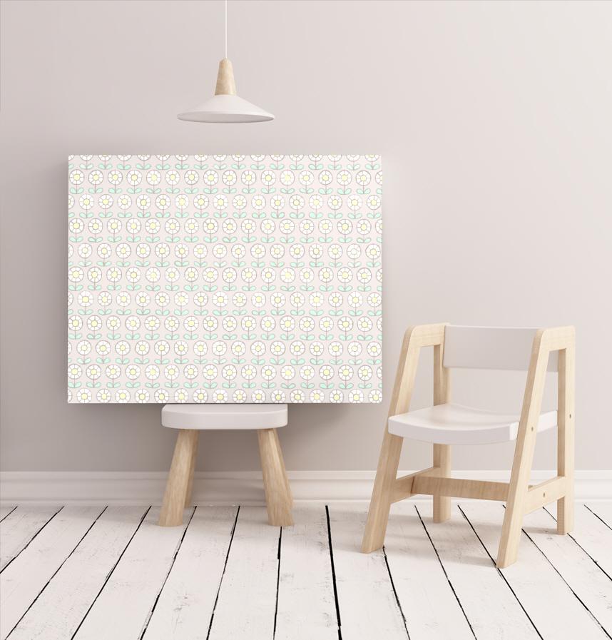 色鉛筆の素朴なタッチが温かな印象の、レトロな花柄です。
