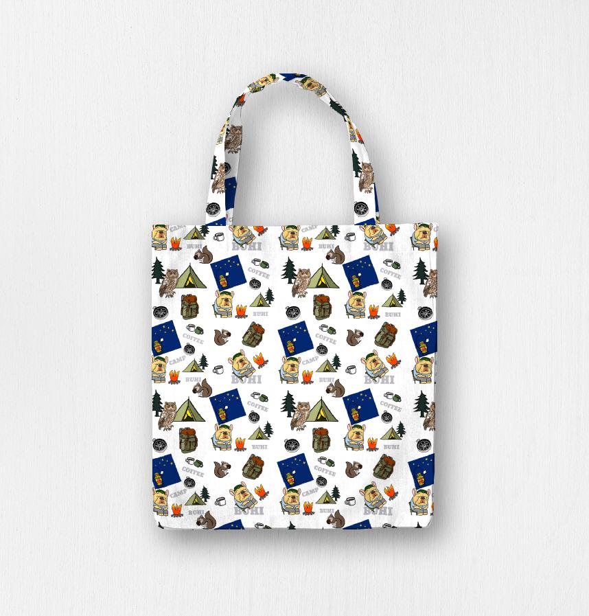 キャンプ中のフレンチブルドッグのデザインです。