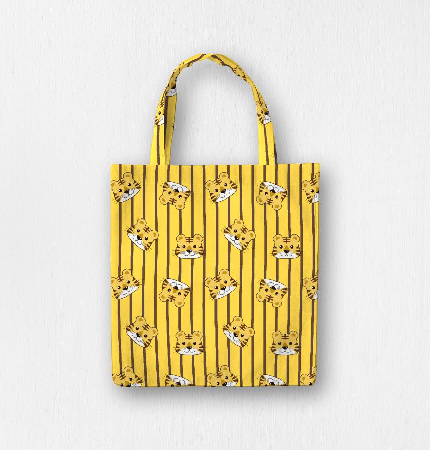 パターン説明 かわいい虎の顔と虎柄をイメージしたストライプ柄です。