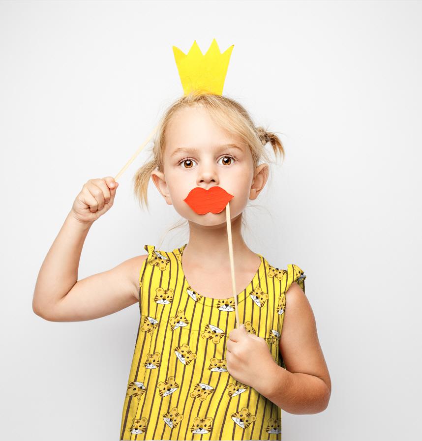 かわいい虎の顔と虎柄をイメージしたストライプ柄です。
