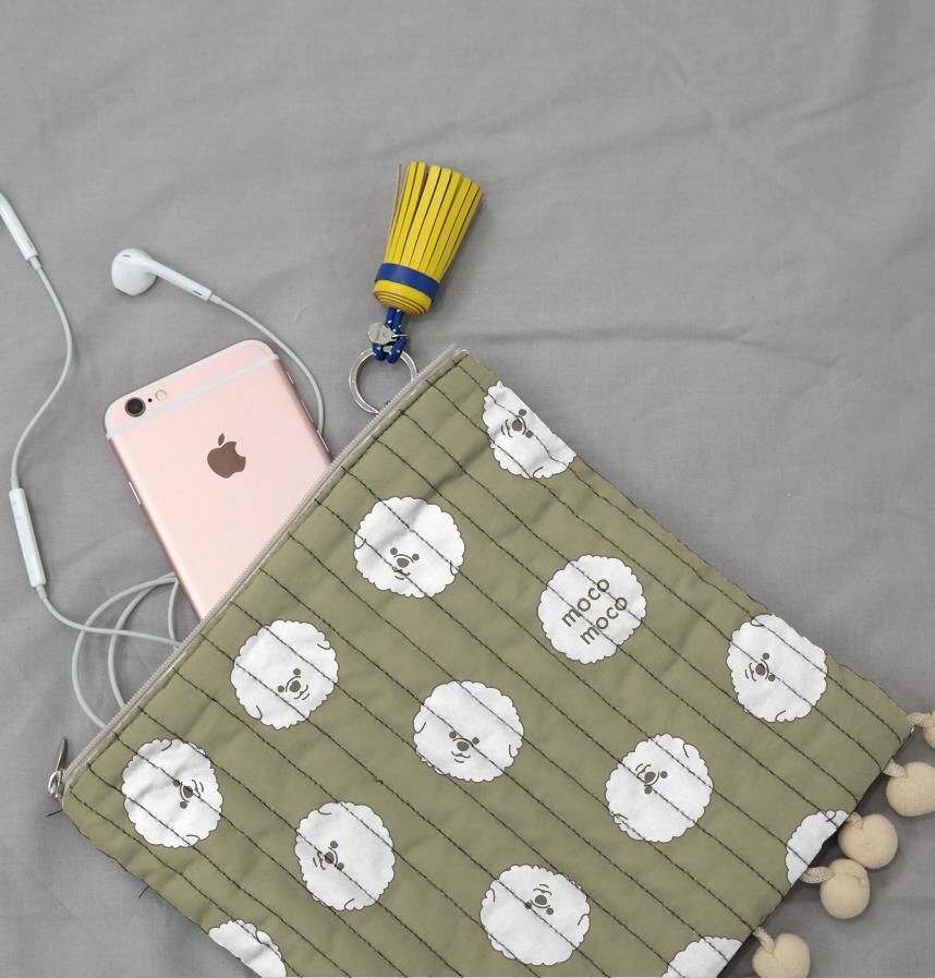 ビションフリーゼやプードルのような白い、モコモコフワフワ犬のドット柄になってます。