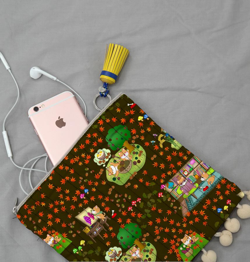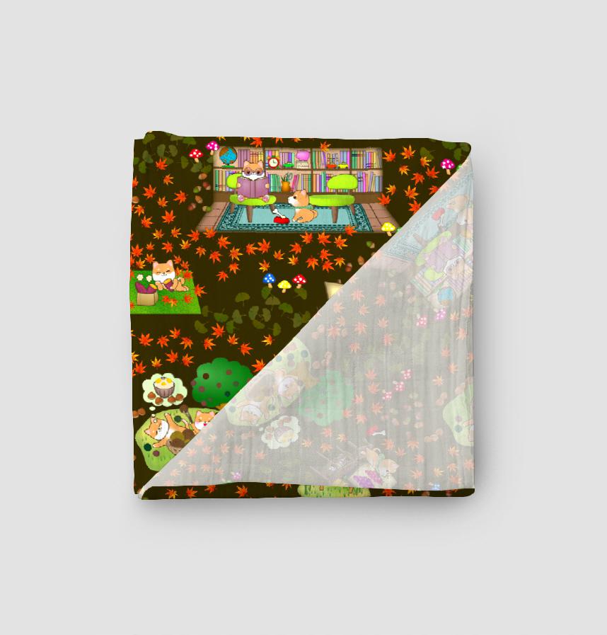 パターン説明 食欲の秋・読書の秋・芸術の秋 秋満喫中の柴犬君