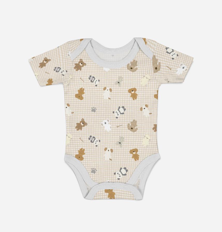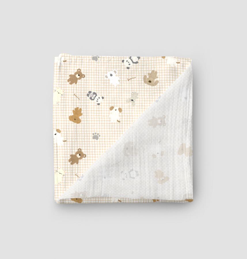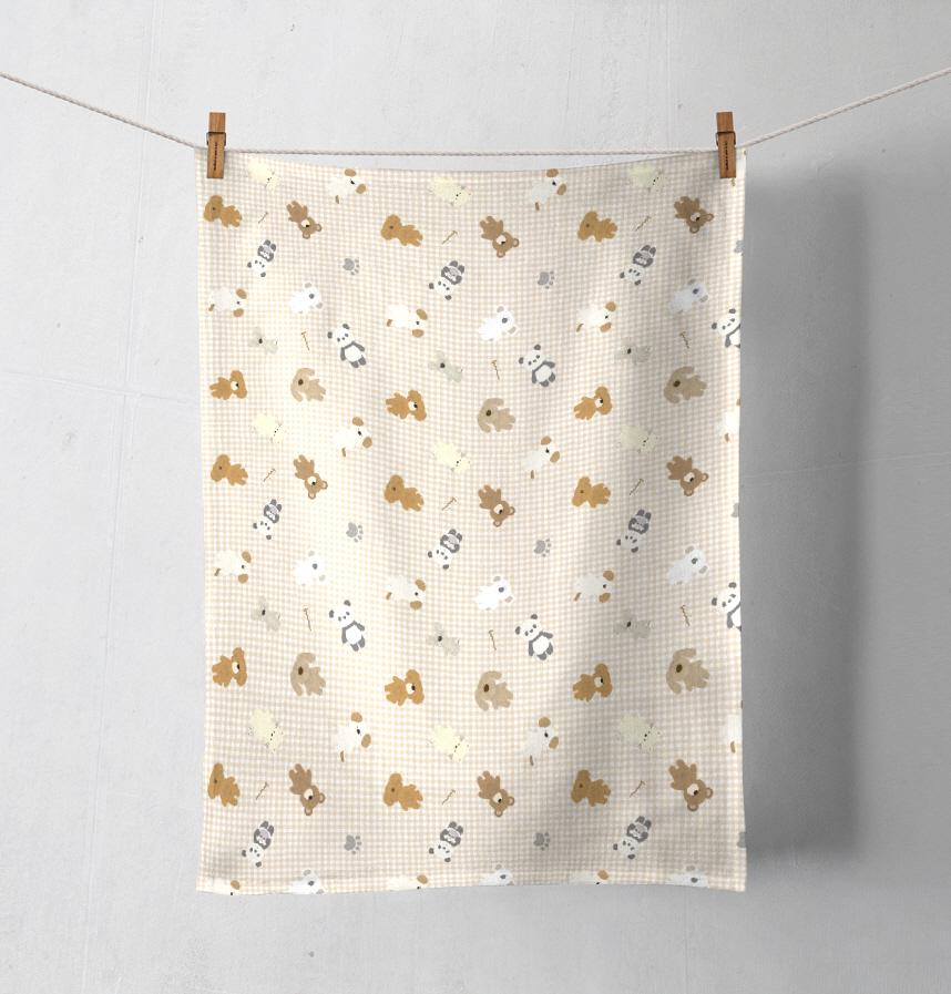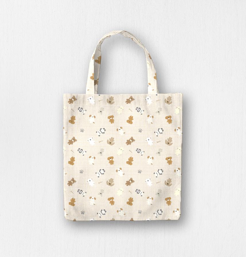 パターン名 もふふわアニマルズ大集合。背景ライトベージュチェック。