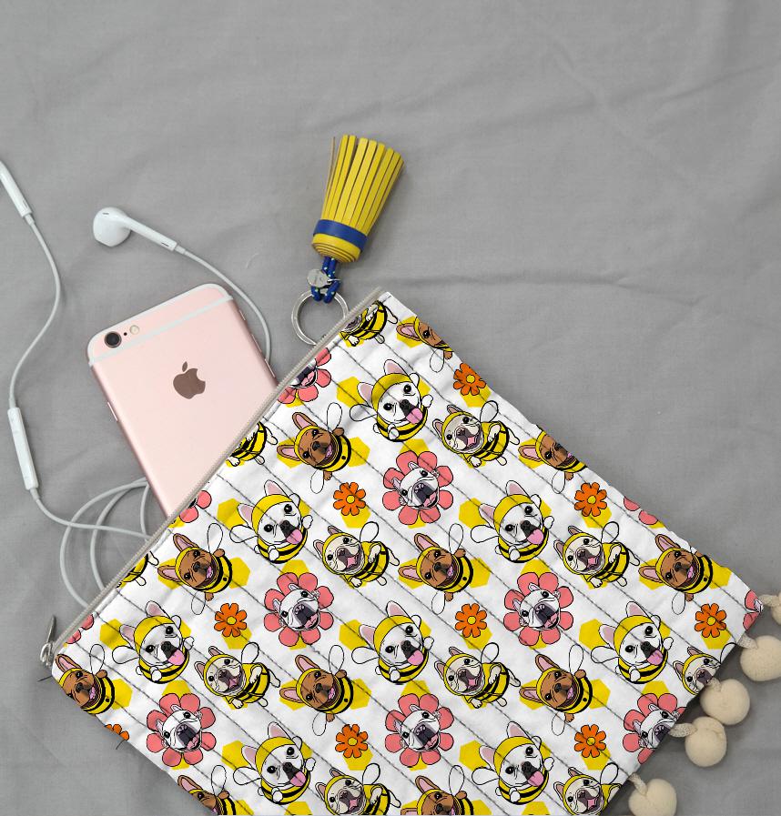 可愛いフレンチブルドッグ達がミツバチになったよ。レトロでキュートなデザインです。