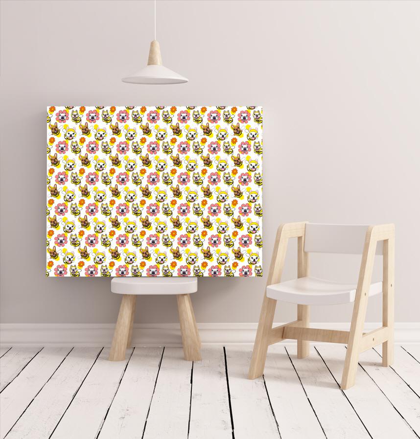 パターン説明 フレンチミツバチドッグと花柄のデザインです