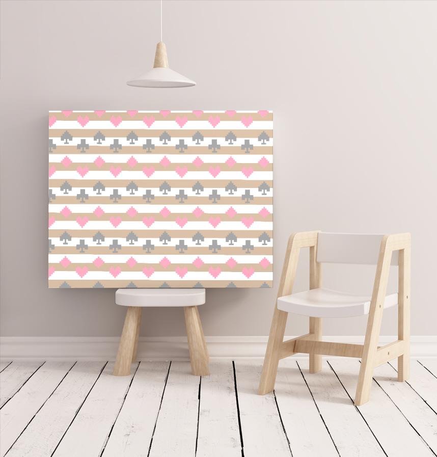 「古書のアリス」をイメージしたトランプとボーダーの図案です。