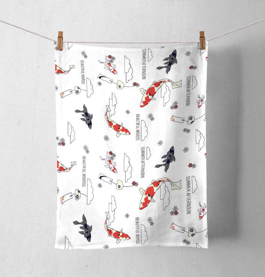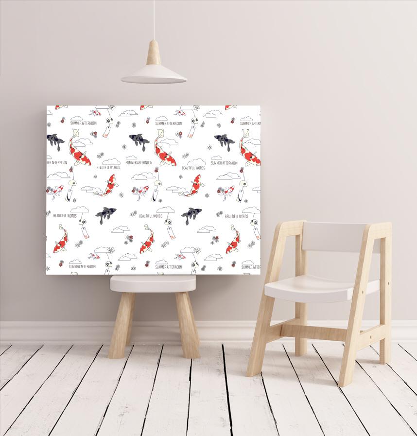 パターン説明 空飛ぶ鯉や金魚をおしゃれに描いたイラストです。