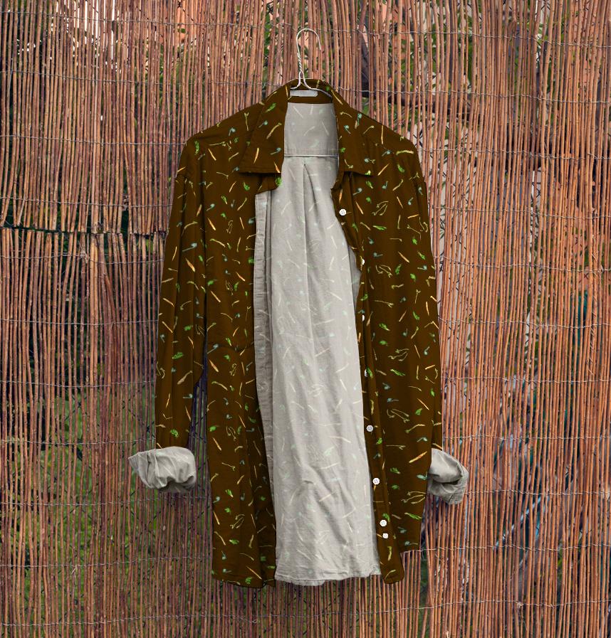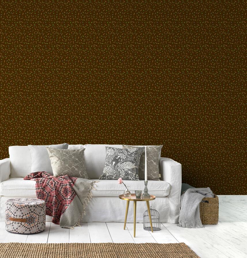 山菜のこごみ、タラの芽、蕨、山うど、姫竹をあしらったテキスタイルです。
