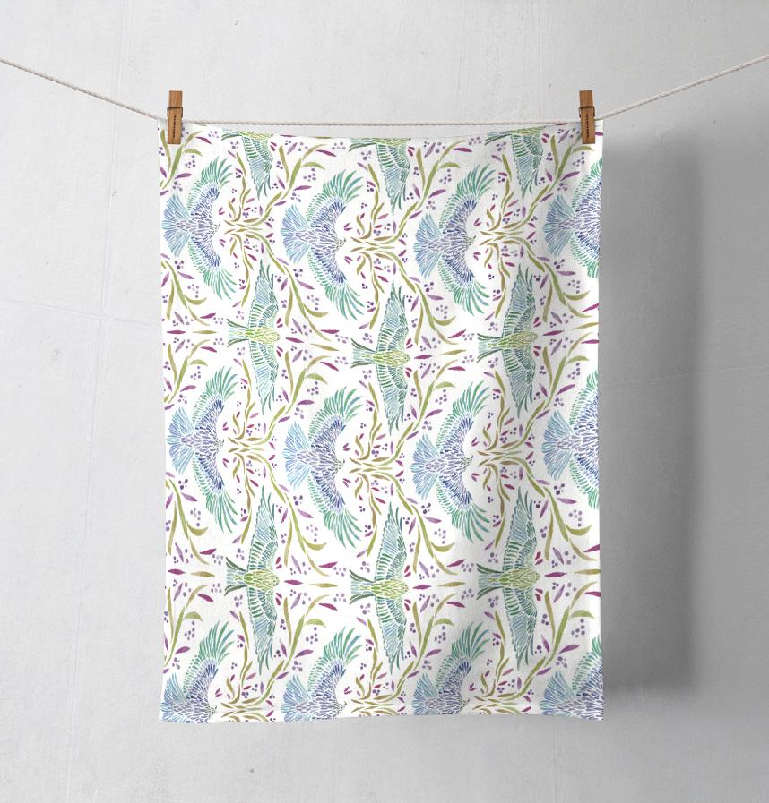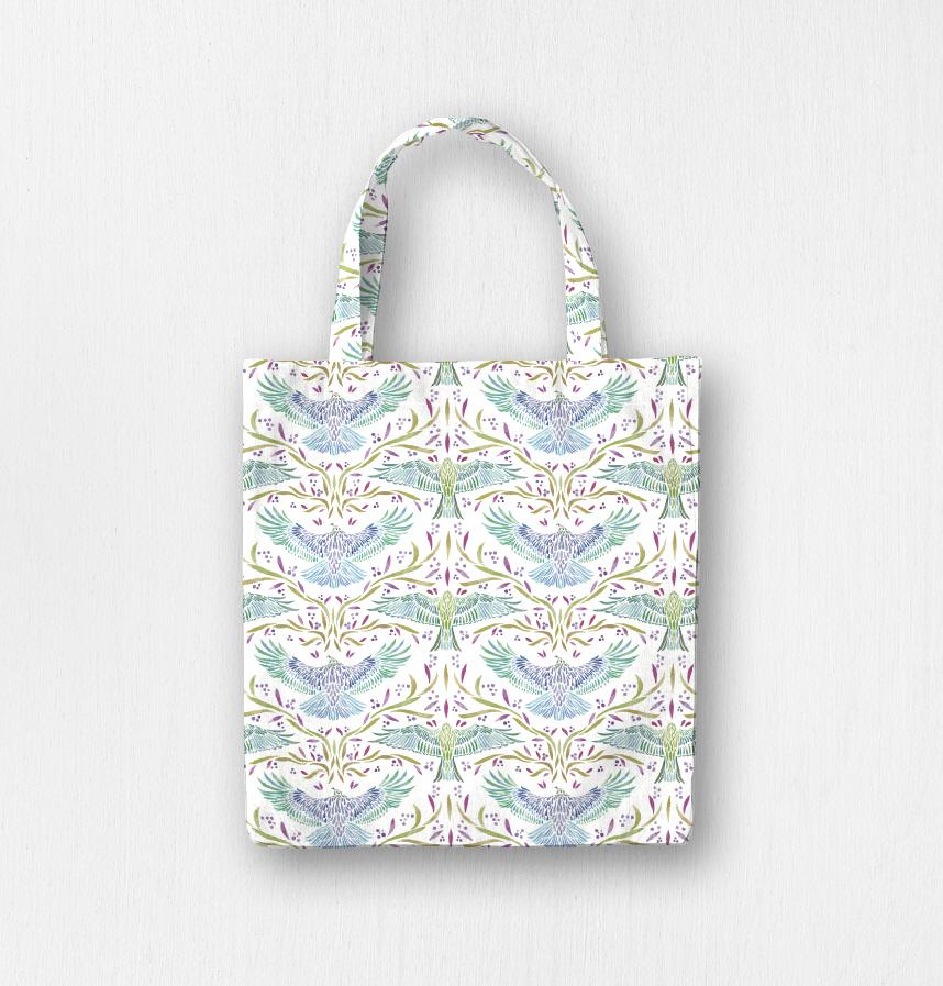 パターン説明 翼を広げる猛禽類の美しい寒色のグラデーションの水彩画です。