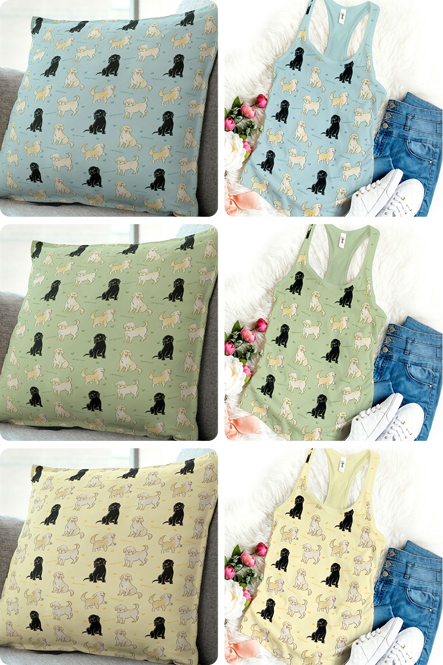 パターン説明 レトリバーの色々な表情を詰め込んだデザイン