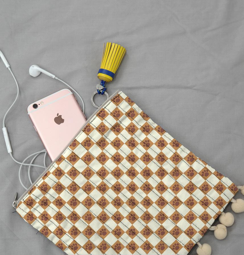 チェック柄(市松模様)に猫の足あとが隠れたようなデザインです。