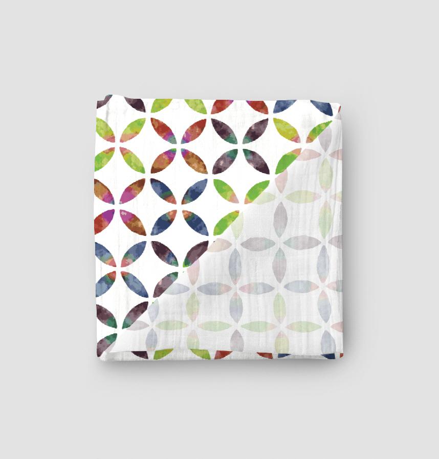 パターン説明 様々な色が滲んでなじみ合う、水彩の和柄「七宝」