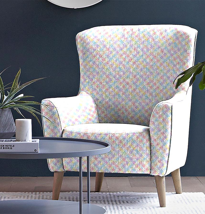 優しいパステルカラーがふんわり広がるチェック柄です。
