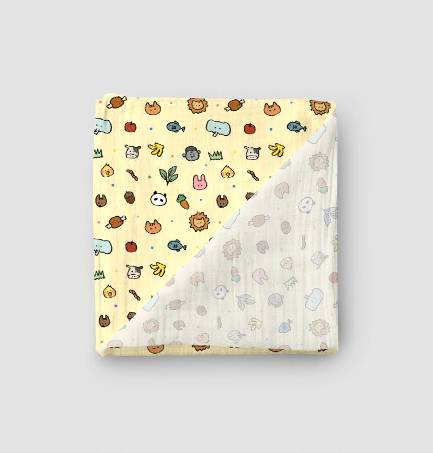 動物たちのお顔とそれぞれの好きな食べ物の柄です。