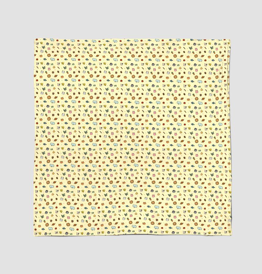パターン説明 動物たちのお顔とそれぞれの好きな食べ物の柄です。