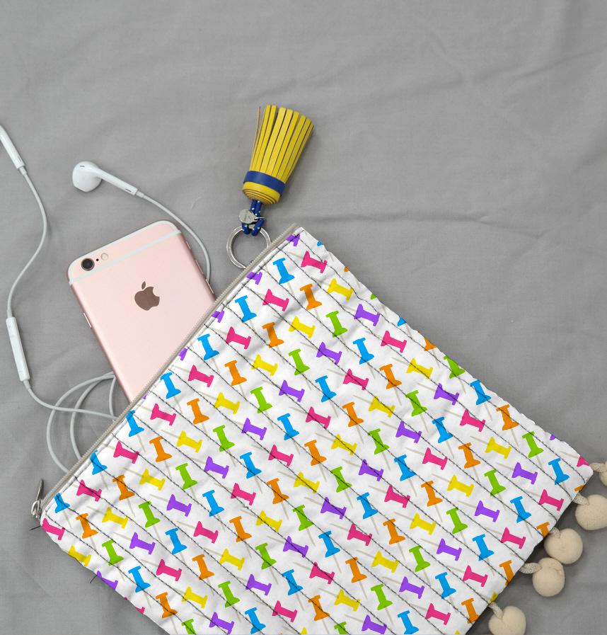 プッシュピンをカラフルに散りばめました。文具好きの方に。
