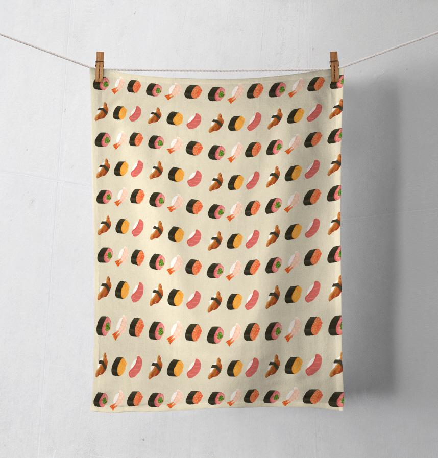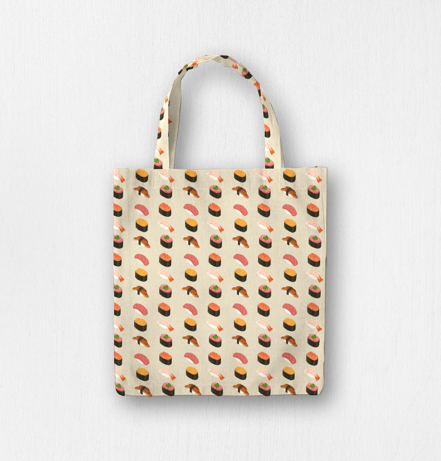パターン説明 お寿司のイラストを散りばめたデザインです。