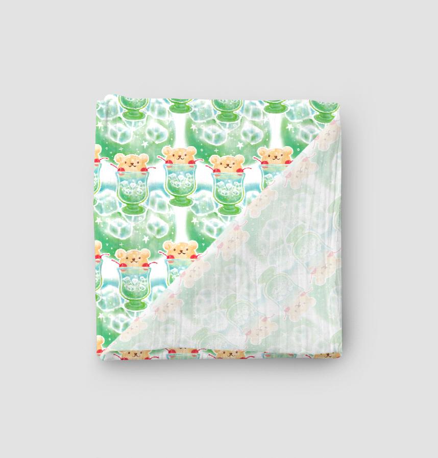 くまちゃんアイスがソーダに乗った、爽やかでほっこりするデザインです
