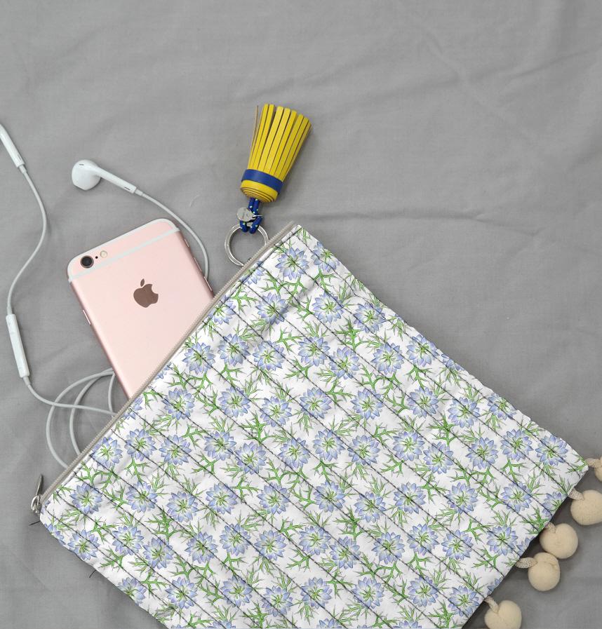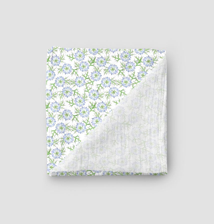 アナログイラストをスキャンして色付け・パターン化したニゲラのデザインです。