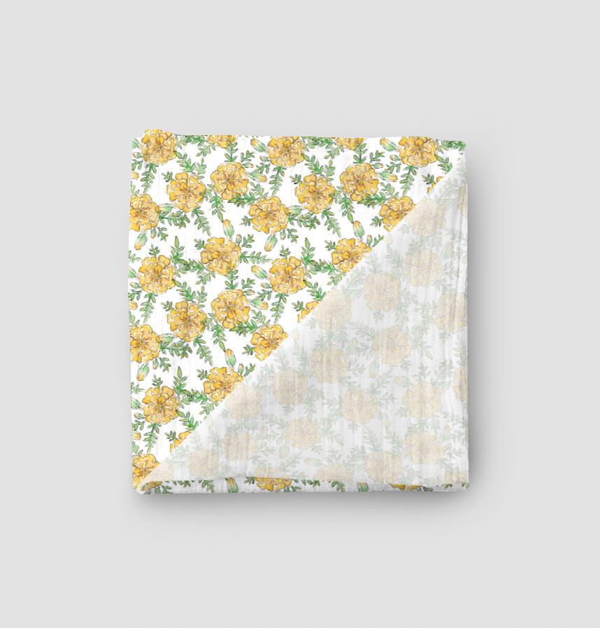 アナログ線画から起こしたマリーゴールドのパターンです。