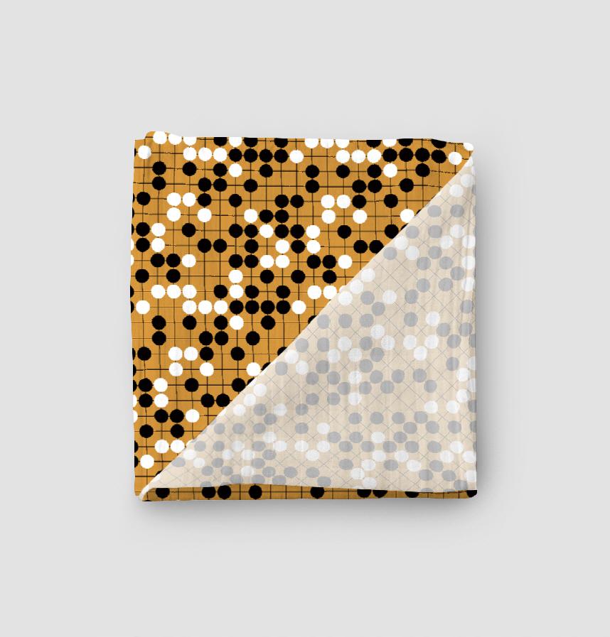 「盤上の小宇宙」と言われる囲碁をパターン化しました。碁石と碁盤目の美しいデザインです。