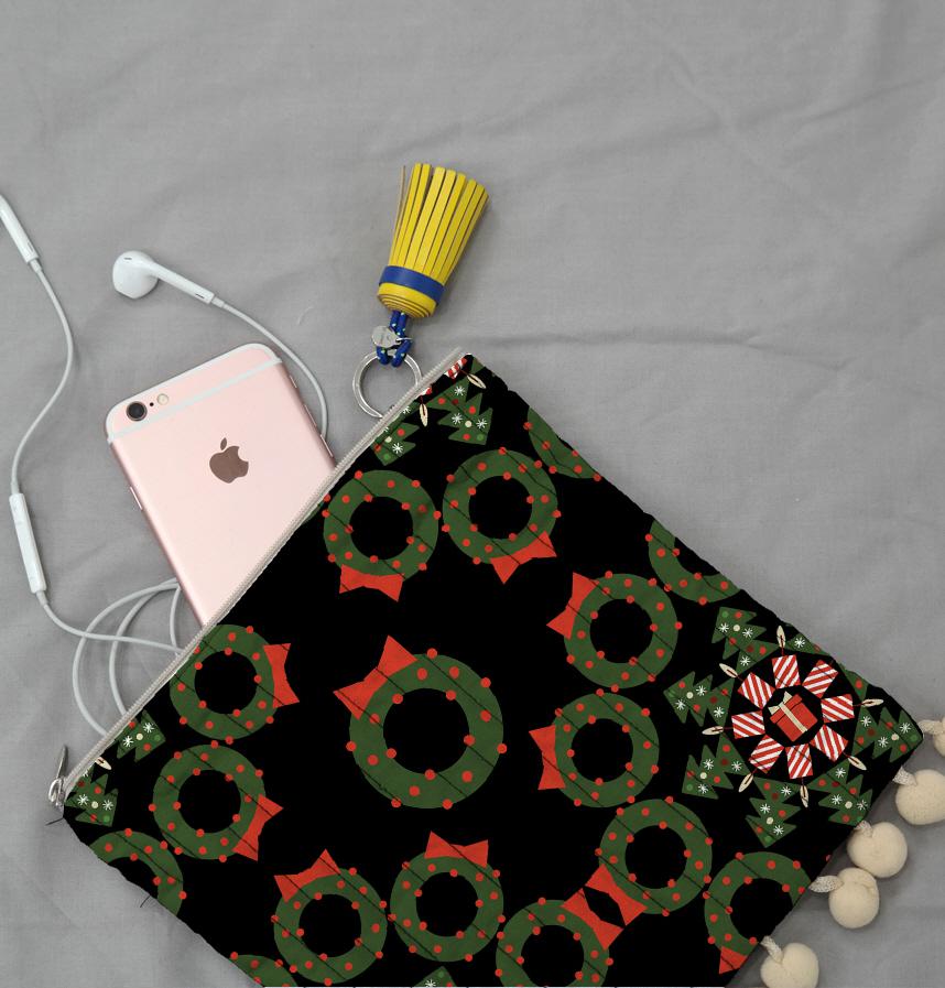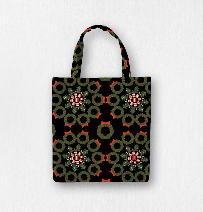 クリスマスリースをパターン化したデザイン