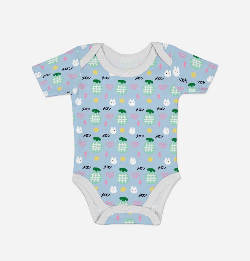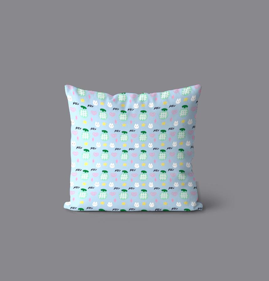 パターン説明 メロンとウサギ、星、ハートの形が描かれたパターンです