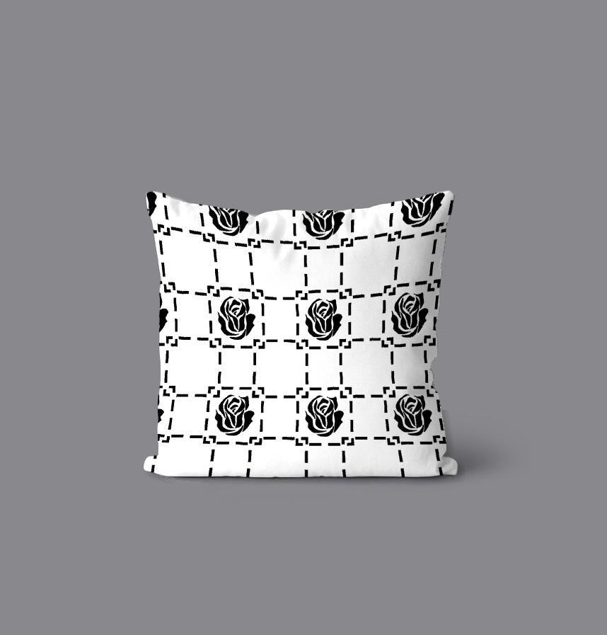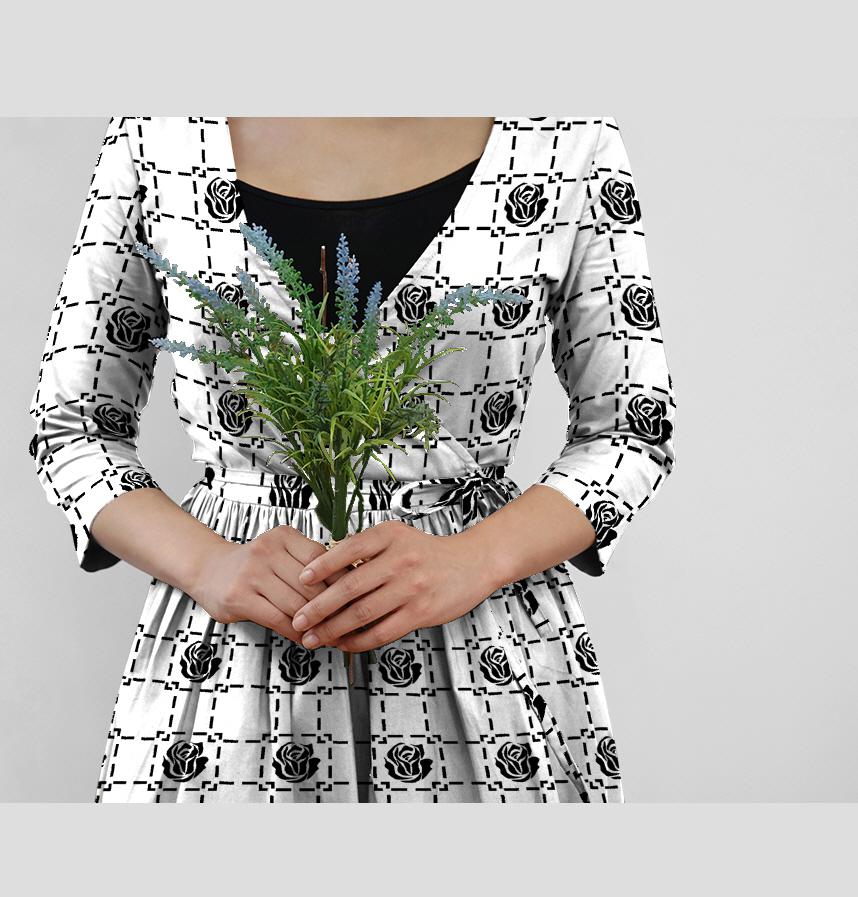 パターン説明 レトロ感のあるバラと点線ボックスの調和