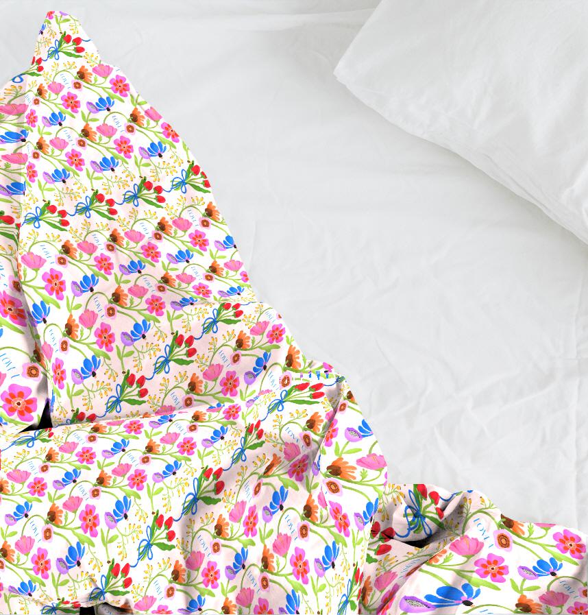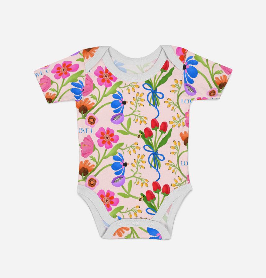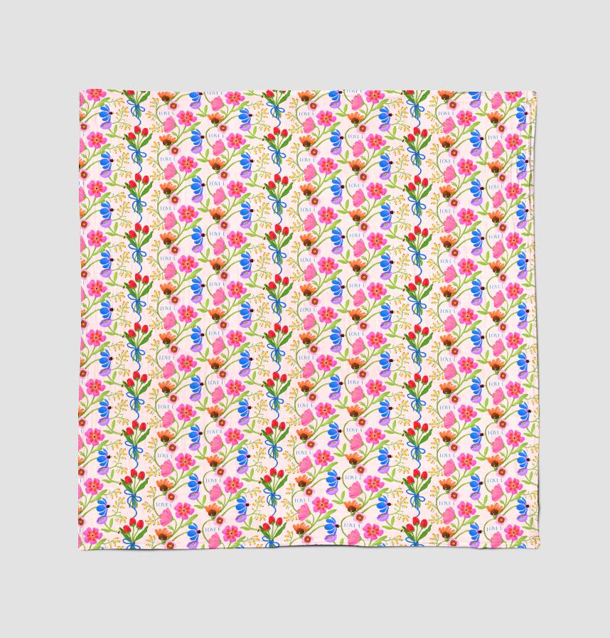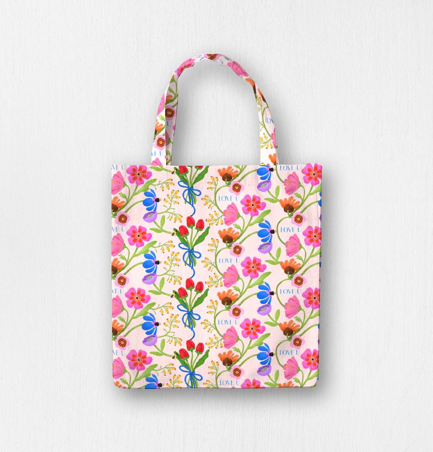 色とりどりの花とその間を行き来するミツバチ、そして青いリボンで結ばれたチューリップの花束が中心をなして、あちこちに配置された“LOVE U”テキストは大切な人に伝えたい温かい心を象徴します。